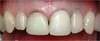 Ce patient de 28 ans présente d’anciennes couronnes céramométalliques dont l’esthétique ne le satisfait plus. Elles sont avantageusement remplacées par des couronnes confectionnées intégralement en céramique (une base en céramique dense pour la solidité, recouverte d’une épaisseur de céramique cosmétique en surface). Le rendu final n’en est que plus naturel.