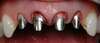 Cette patiente de 65 ans présente une infection au niveau des racines des incisives latérales supérieures, nécessitant l’extraction de ces deux dents. En raison d’une maladie de gencives (parodontose, « déchaussement des dents »), les dents restantes ont perdu une partie de leur support osseux. Bien que conservables, elles demeurent mobiles, et ce même après la réalisation du traitement parodontal approprié. La confection d’un pont entre les premières molaires droites et gauches (i.e. les douze dents de devant de la mâchoire supérieure) permet alors de remplacer les incisives latérales manquantes (les secondes en partant du milieu) et de stabiliser les dents restantes. Ces ponts sont aussi appelés « pont de contention ».